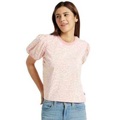 女式棉质常规版型通体印花圆领泡泡袖上衣