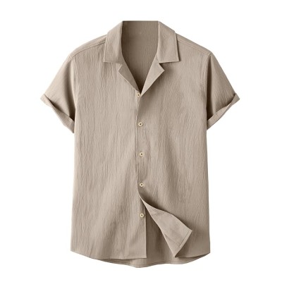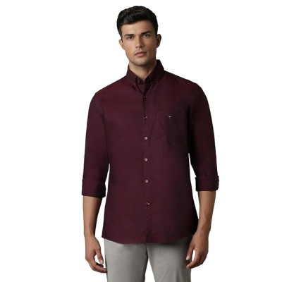 男士易于护理的棉质修身版型纯色休闲衬衫,具有自然弹力