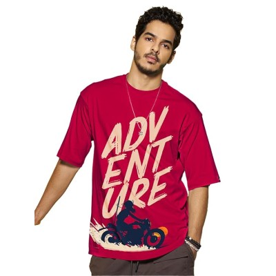 男士排版 100% 纯棉 T 恤 - 超大版型,圆领,半袖