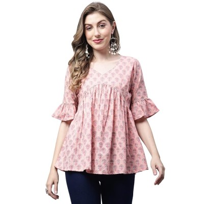 女式纯棉斋普里印花短上衣 (MONJPR703_Peach)