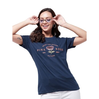 女式T恤半袖印花圆领棉混纺 ||夏季穿搭 ||时尚女式 T 恤
