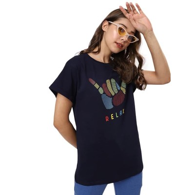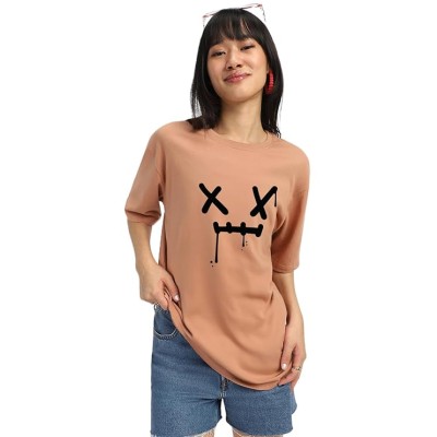 女式 100% 纯棉图案印花超大版型圆领 T 恤女式夏季时尚 T 恤