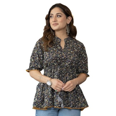 撞色尖头印花上衣 – 时尚民族和西方女式上衣 – 夏季旅行装、牛仔裤时尚上衣、轻便舒适休闲装
