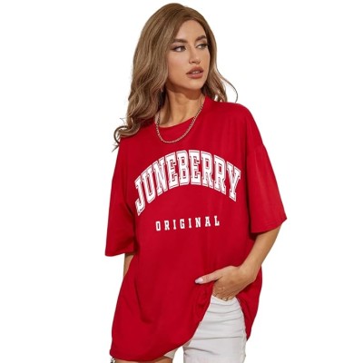 女式 100% 纯棉常规版型 T 恤 |圆领半袖印花T恤 |常规版型印花 T 恤 女士/女孩