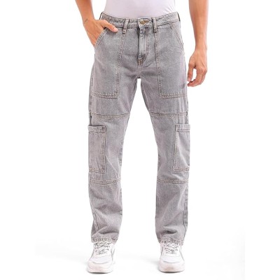 男士 Dad Fit 纯色中腰牛仔裤