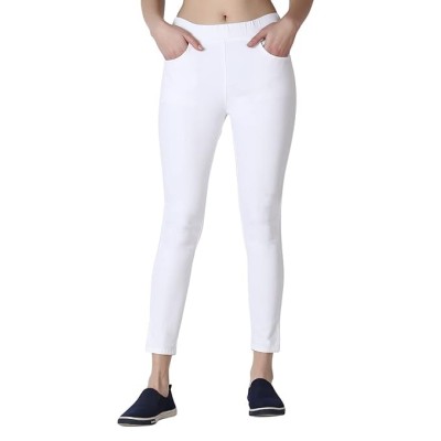 修身及踝弹力棉质裤子,带 2 个口袋,适合女士和女孩