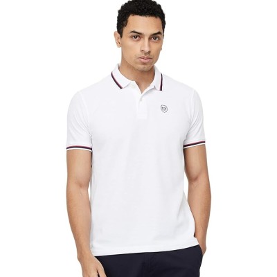 男士棉质涤纶半袖常规版型纯色 Polo T 恤 (White_L)